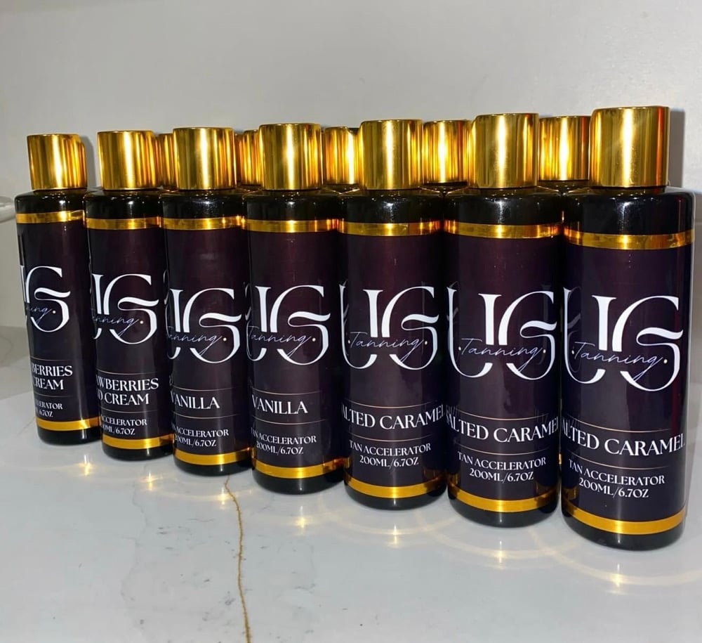 Achieve a luxurious, dark & deep tan with our Nee Range - UG Pro Tan Accelerator. Indulge in delightful scents of vanilla, salted caramel, and strawberries & cream . Transform your tanning routine today.